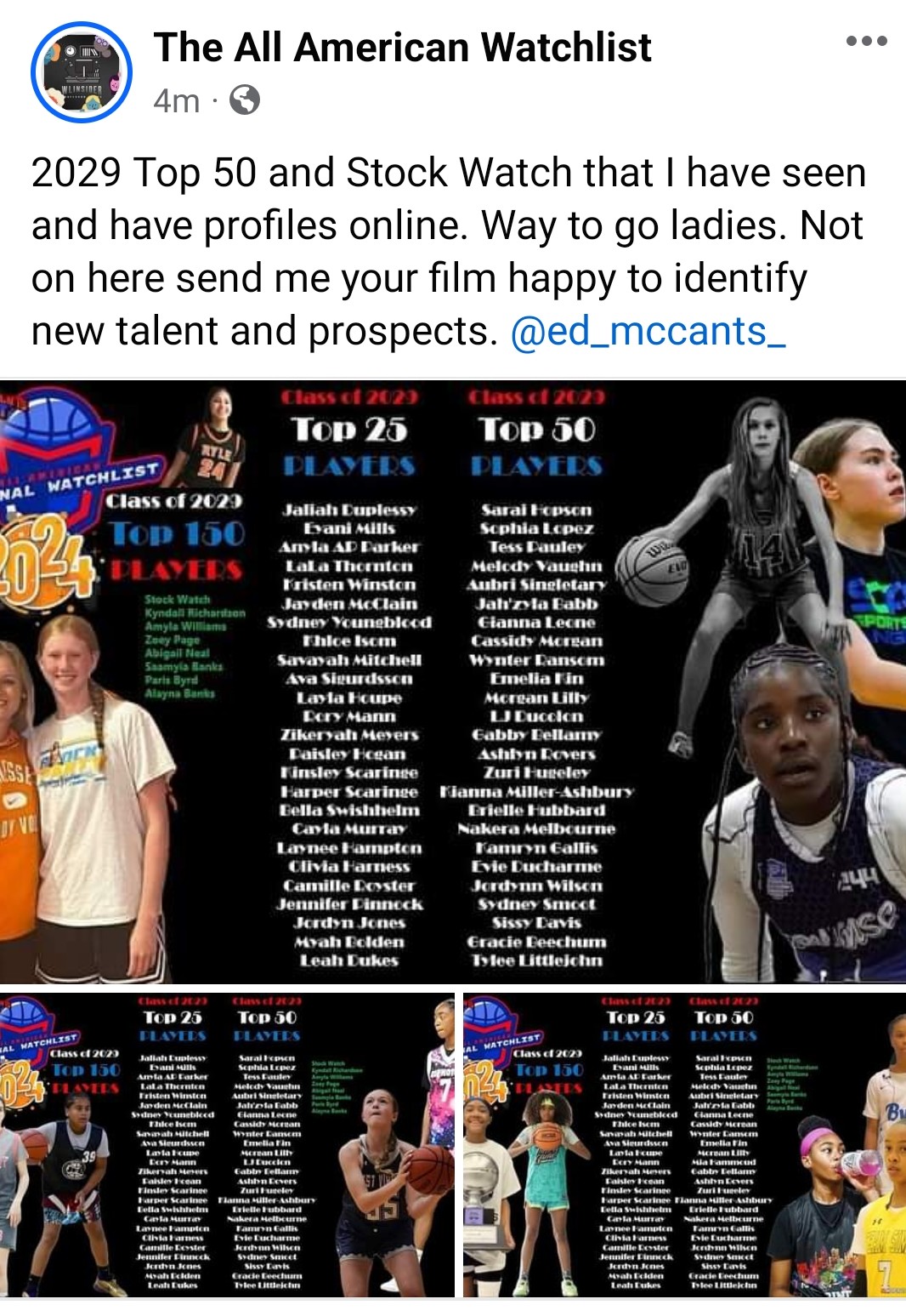 Bella Swisshelm on X: “Thanks to All American 2029 Watchlist for