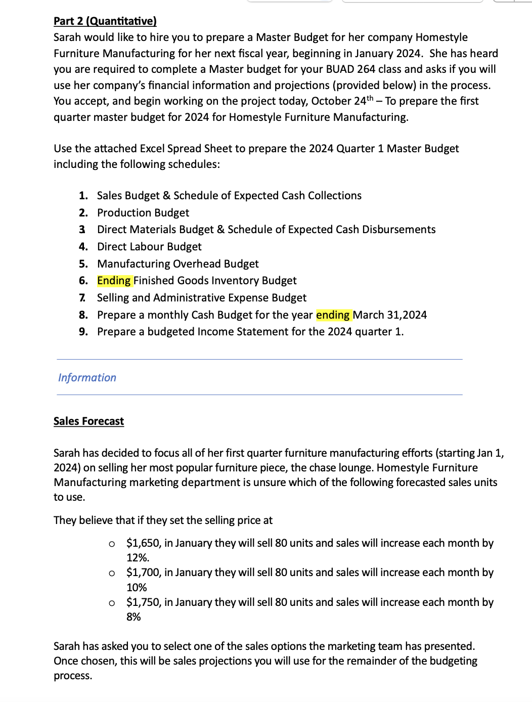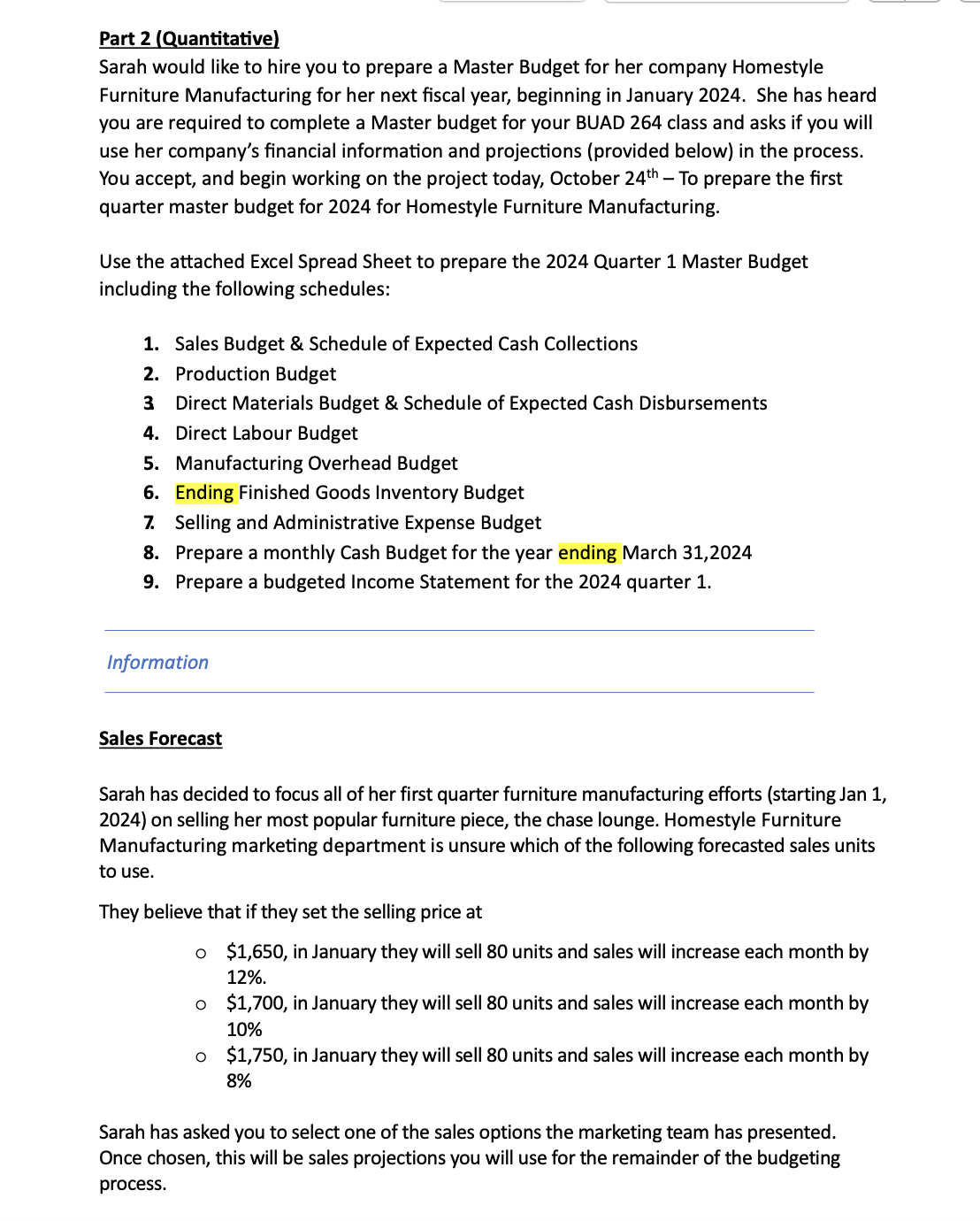 Part 2 (Quantitative) Sarah would like to hire you to | Chegg.com