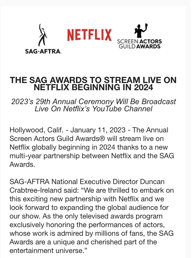 Netflix to Air SAG Awards as Part of Multi Year Deal